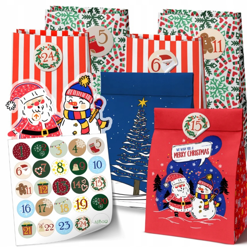 - W zestawie 24 papierowe torebki oraz 24 ponumerowane naklejki na każdy dzień grudnia.